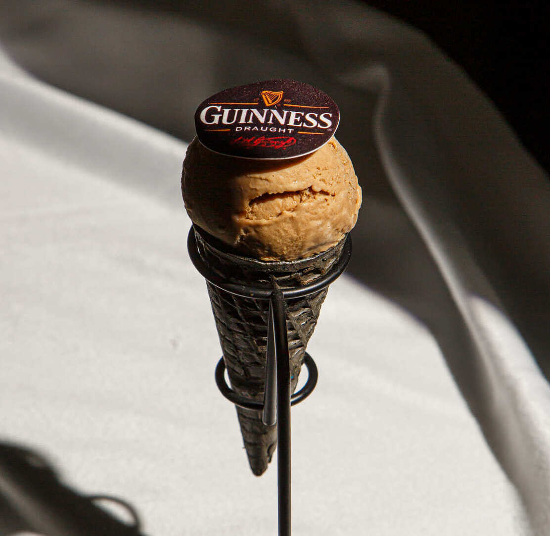 Мороженое с пивом Guinness и молочным шоколадом (300 руб) — сливочное мороженое на основе молока и пива Guinness с добавлением молочного шоколада.