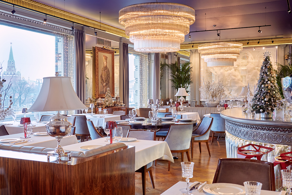 Фантастический вид на исторический центр Москвы, несколько видов чёрной икры, шампанское из богатейшей коллекции ресторана и, конечно, изысканное меню от нового шеф-повара ресторана Романа Чистова в сопровождении живого джаза и новогодних хитов от приглашённого диджея.