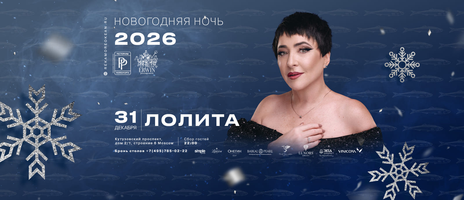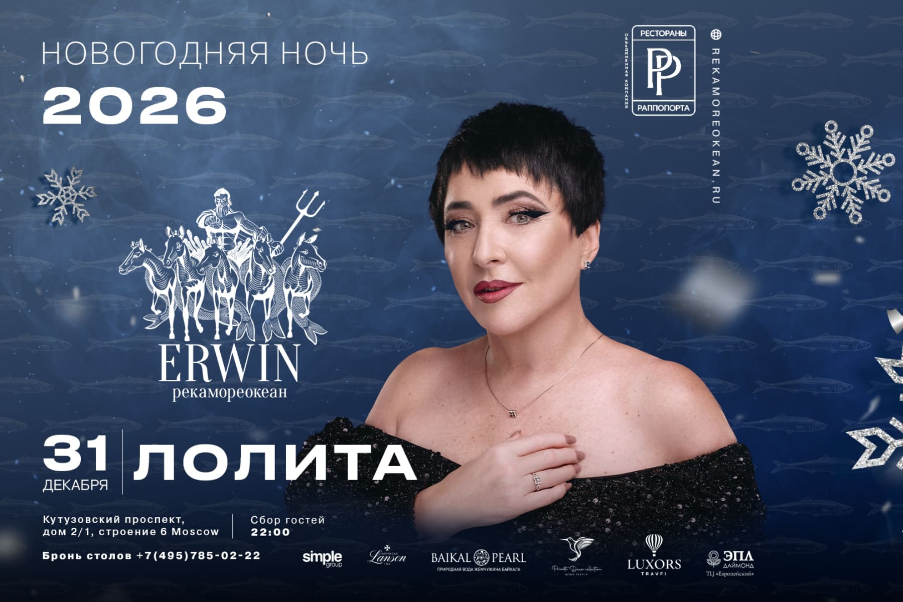 В этом году ресторан Александра Раппопорта «ERWIN.РекаМореОкеан» устраивает масштабную новогоднюю ночь в сопровождении звезд, изысканной кухни и шикарных подарков. За музыкальную атмосферу отвечает Лолита, DJ-шоу, кавер-группа, которые будут выступать на сцене ресторана и встречать Новый 2026 год вместе с гостями.